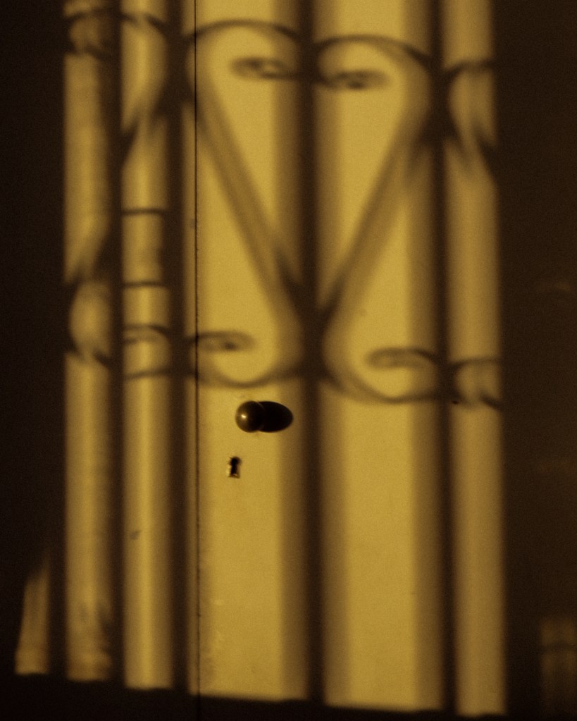 Na quinta (26/mar) registrei a belíssima luz do pôr do sol no meu armário, com o sombreado dos contornos da grade da janela.